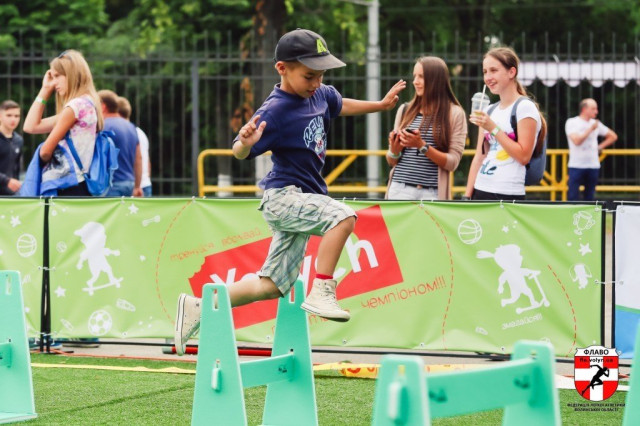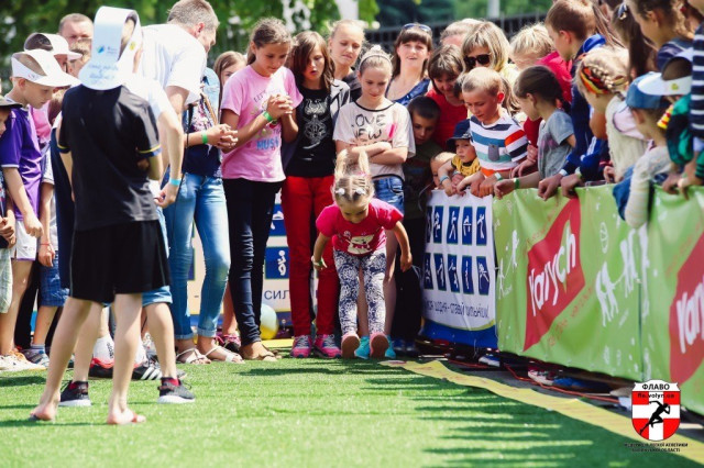 Ведучі, а також їхні помічники, троє веселих звіряток-чемпіонів — Ведмедя, Кенгуру та Кота — пропонували дітям та їхнім батькам стрибнути потрійний або з місця, пробігти естафету. Переможці і не тільки вони отримували від звірят подарунки, а також сертифікати, які засвідчують встановлення особистого рекорду чемпіонату! Приємно, що дитячі азарт підтримали й батьки — вони часто разом із своїми доньками і синами стрибали, бігали у фан-зоні.