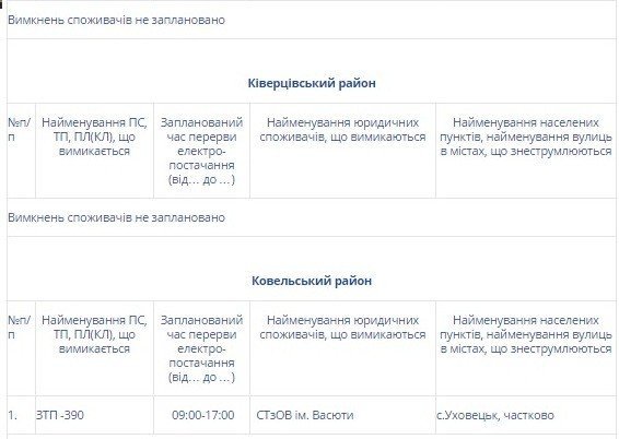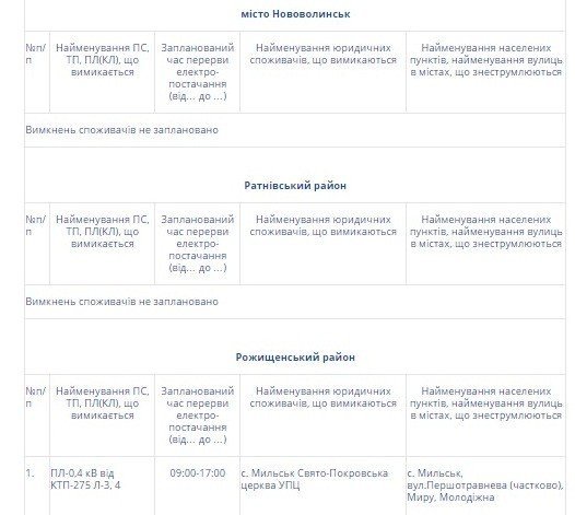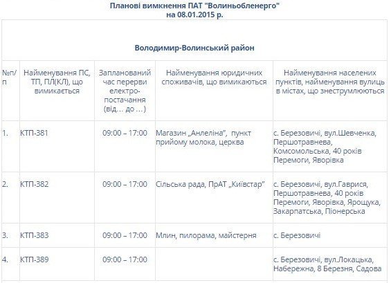 ПАТ «Волиньобленерго» інформує про планові відключення електроенергії на Волині сьогодні, 8 січня.