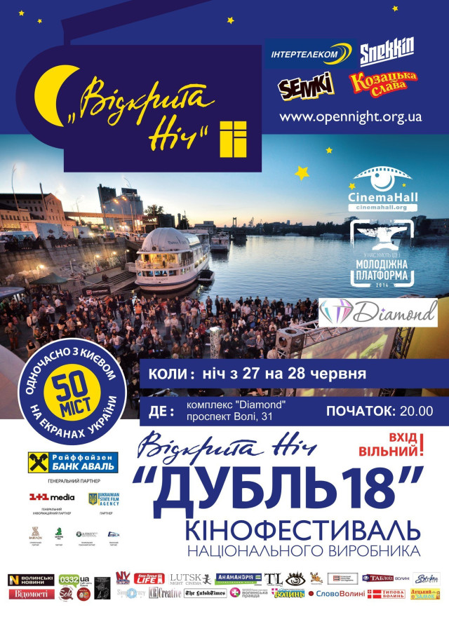 “Відкрита ніч” - фестиваль сучасного українського короткометражного кіно, що покликаний відкривати нові українські імена у галузі кінематографу та телевізійного виробництва. 18 рік поспіль пошановувачі кіно збираються наприкінці червня, щоб насолодитися новим українським кіно, - повідомляють організатори заходу.