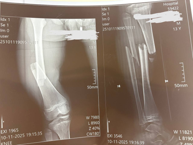 Наслідки падіння для 13-річного Максима – перелом стегнової кістки зі зміщенням і кісток гомілки.«Переломи дуже серйозні, – каже дитячий ортопед-травматолог Богдан Петерчук. – Попри це, завдяки інтрамедулярному остеосинтезу через два дні після операції Максим вже рухає ногою та швидко реабілітується. Оперативне втручання ми зробили через невеликі розрізи на стегні та гомілці».