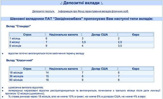 У Західінкомбанку не афішують наявність нової хитрої програми для власників депозитів. Деталі обіцяють розповісти тільки при особистій зустрічі і тільки тим, хто є власником депозиту.