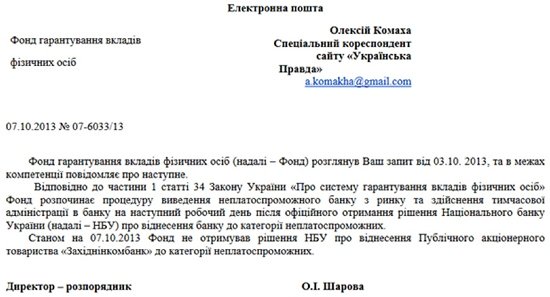 У самому фонді говорять, що не мають права втручатисяв ситуацію. «Фонд не отримував рішення НБУ про зарахування Західінкомбанку до категорії неплатоспроможних», - стверджує його директор-розпорядник Олена Шарова.