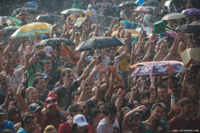 Інший волонтер, скажімо так, більше наближений до музикантів, із награною розважливістю розповідає про зірок: «О-о, а ви бачили – «Ленинград» кілька автомобілів апаратури привіз? Знаєте, раніше про дівчат запитували, траву… Але нам сказали не реагувати на такі питання, бо будуть проблеми»…