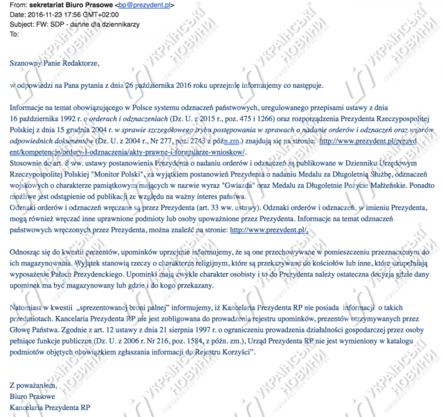 І звичайно, полякам не прийде в голову ховати списки своїх нагороджених. Вони, навпаки ними пишаються. Публікують їх імена в Офіційному віснику Республіки Польської "Польський монітор". Про це прямо говориться у відповіді канцелярії президента Польщі на запит Українських Новин.