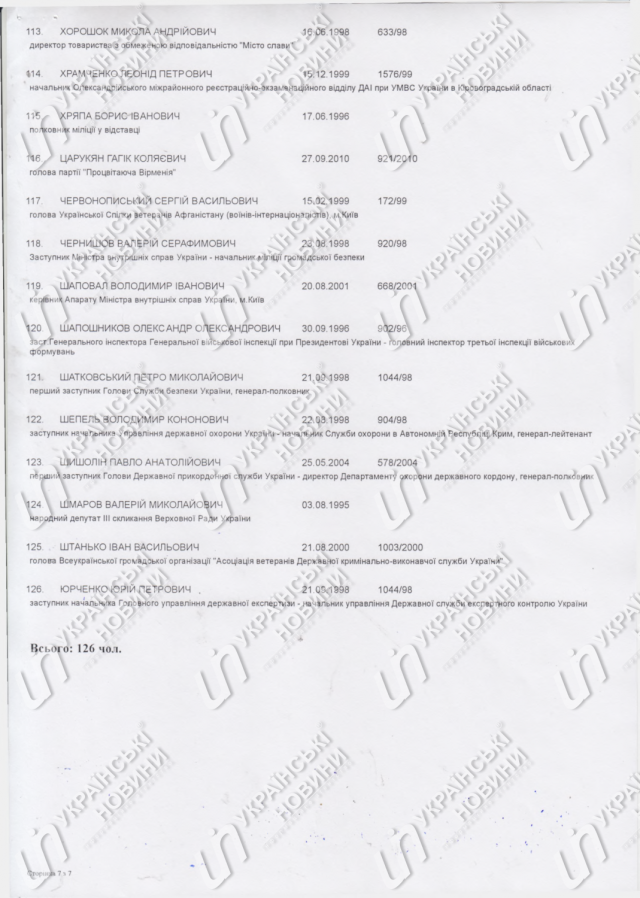 Серед нагороджених в цей час - народні депутати Богдан Губський, Борис Дейч, Володимир Нечипорук. Отримує пістолет і заступник голови Апарату парламенту, колишній міліцейський генерал Іван Куцик (нині керує Держуправсправами).