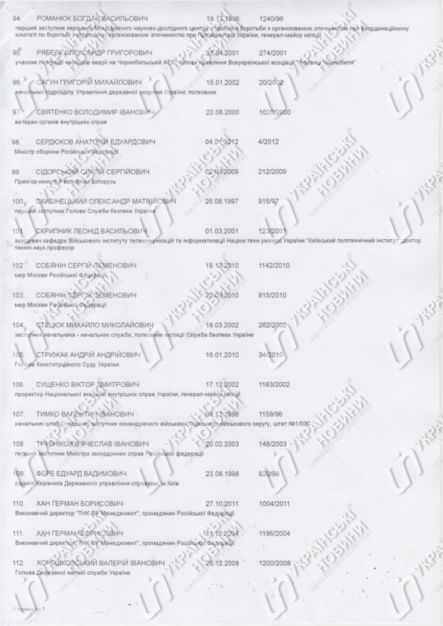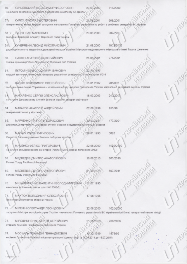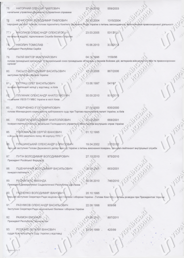 У президента Віктора Ющенка найкоротший список. 5 нагороджених - по одному в рік. Двоє з них - до Дня народження.