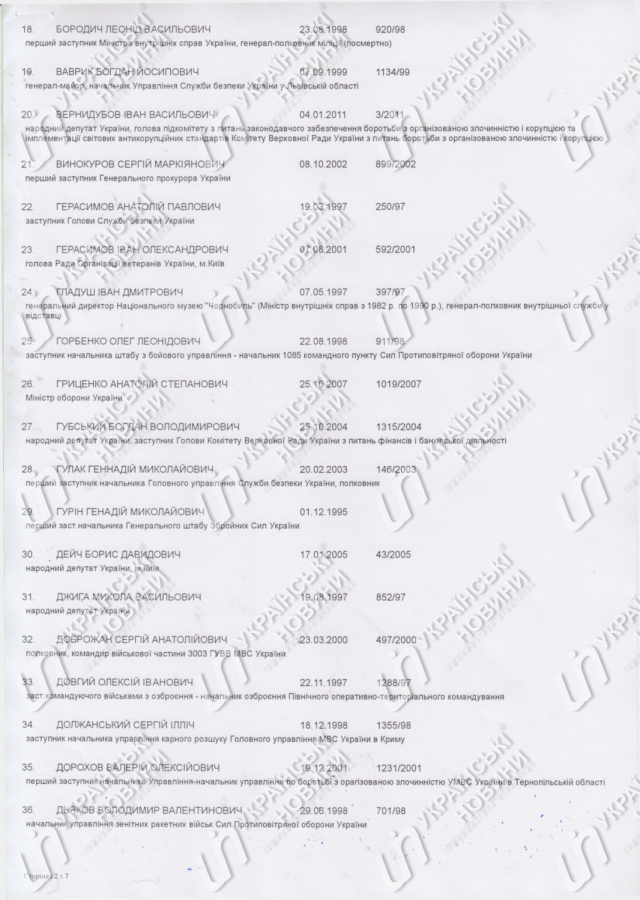 Нагороджуються глави громадських організацій, керівники навчальних закладів - проректор Національної академії МВС і завідувач військової кафедри КПІ.