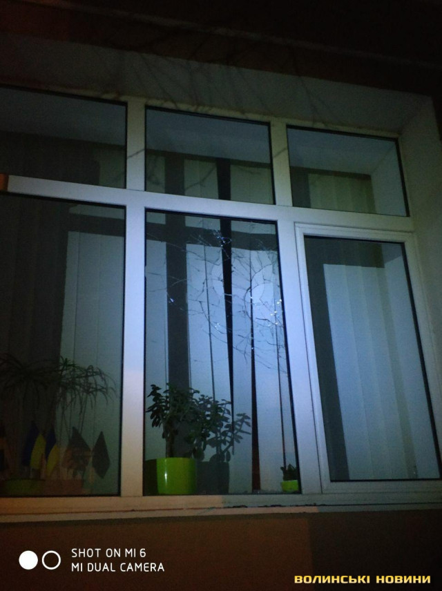 Вночі невідомі побили вікна луцьким муніципалам, підозрюваний потрапив на камери. Відео