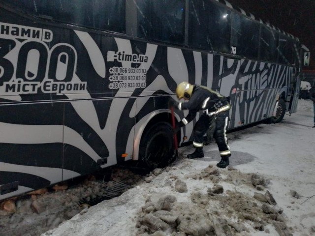 О 2:20 рятувальники Державної пожежно-рятувальної частини м. Ковеля виїжджали на вулицю Варшавську, де відбуксирували рейсовий автобус міжнародного сполучення із 12 пасажирами на борту.