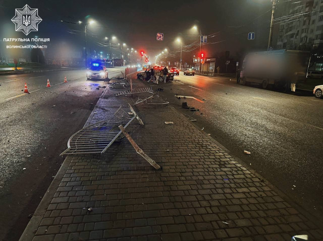 З’ясувалося, що автомобіль Lexus здійснив наїзд на металевий паркан на розділювальній смузі, повідомили у патрульній поліції Волині.