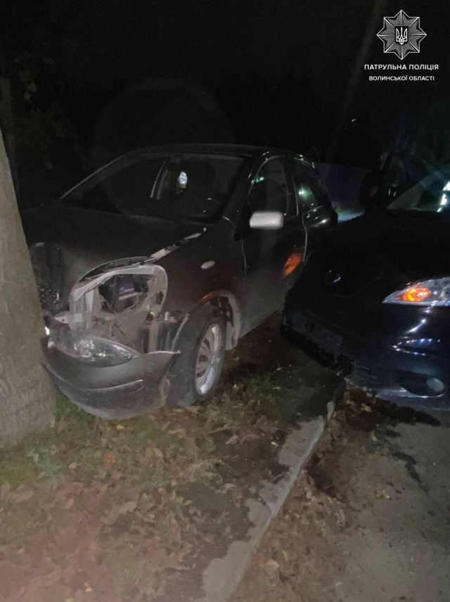 Як розповіли Волинським Новинам у пресслужбі патрульної поліції, водій Nissan не впорався з керуванням та здійснив наїзд на припаркований автомобіль Toyota, від чого Toyota відкотилася та вʼїхала в дерево.