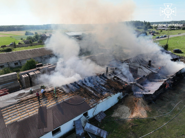 5 липня о 07:11 до служби 101 надійшло повідомлення про пожежу цегляного столярного цеху в селі Берестяне Луцького району.