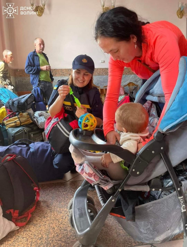 На Волині донецькі родини традиційно зустріли працівники обласного управління Державної служби надзвичайних ситуацій, соціальні працівники, психологи та поліцейські. Співробітники ДСНС супроводили людей від вагонів евакуаційного потяга до автобусів та надали психологічну допомогу тим, хто її потребував.