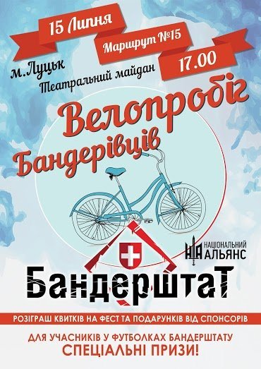 «Велопробіг бандерівців», який є частиною ювілейного десятого фестивалю «Бандерштат-2016», відбудеться у п’ятницю, 15 липня.