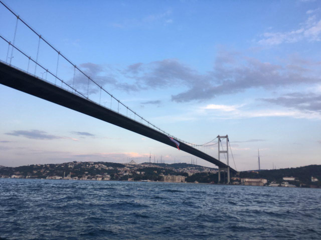 Як зазначає Марина, до першого орієнтиру - мосту Султана Мехмеда Фатіха - вона допливла уже з усвідомленням, що цей заплив для неї точно не про швидкість. "Тут аби догребти, коли вода в очах і треба постійно зупинятися, щоб вилити її з окулярів і спробувати втиснути їх так, щоб вони протікали мінімально. У мене до речі досі міні-синці навколо очей і відповідно біль від цього", - констатує вона.
