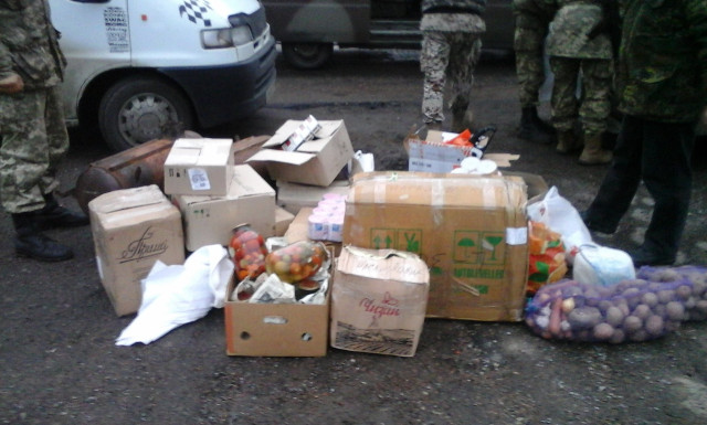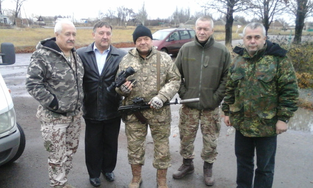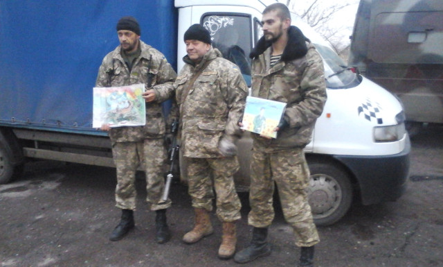 Нічний приціл для стрілецької зброї, продукти та дитячі малюнки привезли у Мар’їнку волонтери з Волині: Віктор Вілентко та Петро Супрунюк.