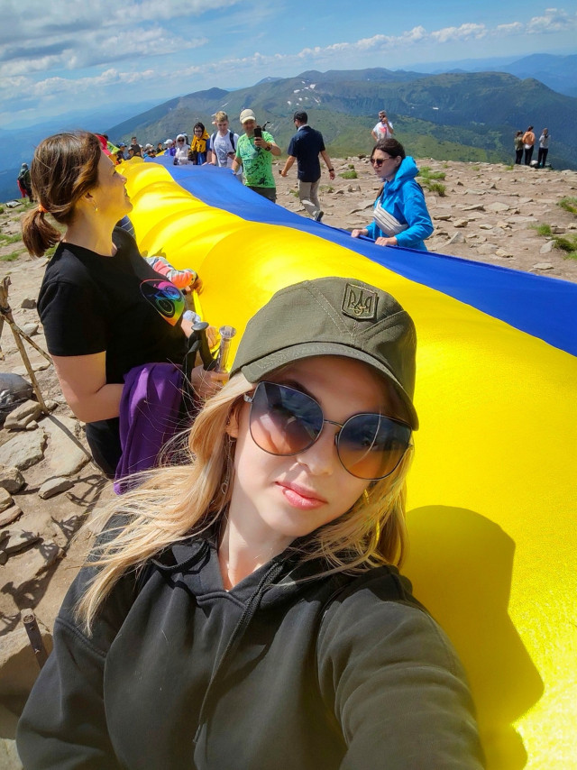 Саме вона власноруч пошила 50 метровий стяг – символ єднання і віри. І він таким став! Адже там на вершині 2,61 метра.