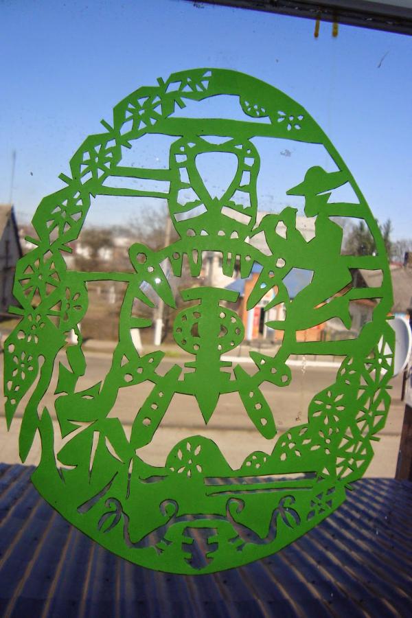 У яскраво-зеленій витинанці-писанці заховалася волинська душа. Вона втілилася в образи безсмертних літературних героїв нашої славної землячки Лесі Українки - Лісової Мавки та Лукаша.