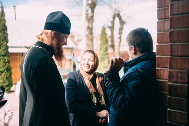 Доки присутні чекали на прихід після Богослужіння владики Нафанаїла, вони активно спілкувалися один з одним. Бо це далеко не перша їхня зустріч у єпархії, і діти, і їхні батьки прекрасно знають і священиків: протоієрея Валентина Марчука, голову єпархіального інформаційно-просвітницького відділу, ієромонаха Іллю (Вишневського), керівника єпархіального молодіжного відділу, бо саме волонтери з молодіжок і є першими помічниками організацій особливих дітей. І найпершим другом для усіх них є волонтер Олег Редько.