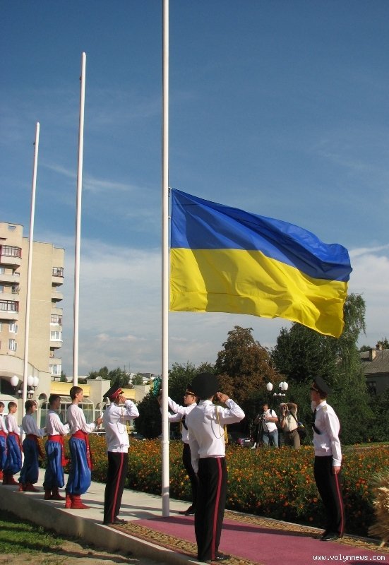 Церемонія підняття державного прапора відбулася 23 серпня на Київському майдані у Луцьку.