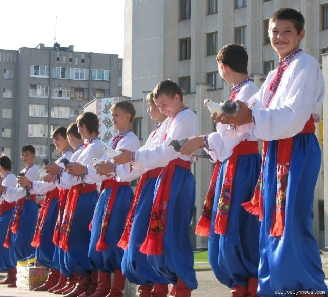 Церемонія супроводжувалася маршем, патріотичними піснями та випуском у небо голубів, жовтих і блакитних кульок.