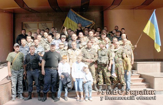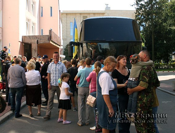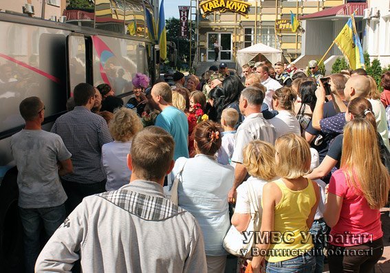 Зустрічали правоохоронців керівництво обласного управління міліції, колеги, рідні та друзі вигуками «Слава Україні! Героям слава!». Перед входом у приміщення УМВС хлопці з бойовим стягом виконали Державний гімн України.