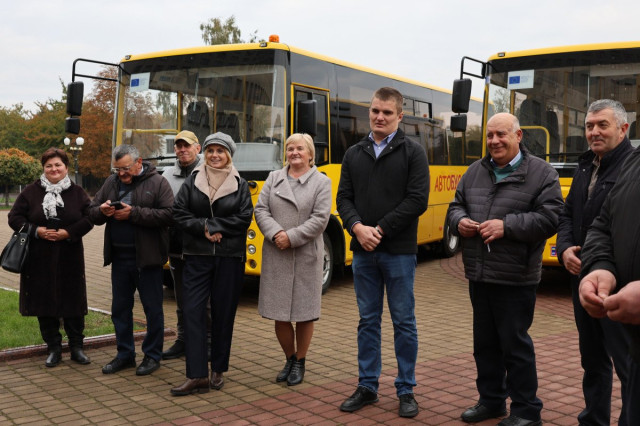 Автобуси, закуплені спільним коштом державної субвенції і громад, передали заступник голови Волинської облдержадміністрації Тарас Шкітер, народний депутат України Вячеслав Рубльов та начальниця обласного управління освіти і науки Наталія Матвіюк.