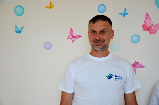 Художник Віталій Шевченко каже: акцент робили на теплих тонах, щоб створити атмосферу, яка підніматиме настрій пацієнтів.