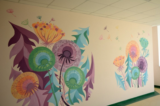 Яскраві мальви, ніжні кульбаби, барвисте різнотрав’я, над квітами літають бабки та птахи – волинські художники вдихнули життя у стіни перинатального центру, що незабаром відкриють у Луцьку. Художні розписи зробили в рамках проекту Фонду Ігоря Палиці «Тільки разом» «Барви надії», йдеться на сайті Фонду.