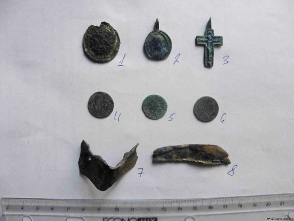 Поряд з могилами знайшли кілька монет, медальйони і хрестик. Медальйони явно належали католикам - на аверсі у одного з них мальтійський хрест, а на звороті - мандрівник-святий. Інший зображає Богородицю з сином.