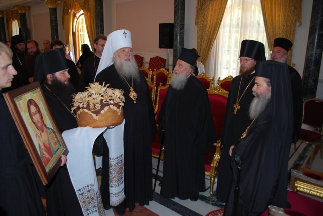 Митрополит Ніфонт привітав Патріарха Феофіла і вручив йому волинський коровай на вишитому рушнику, як символ глибокої поваги до Блаженнішого Патріарха Феофіла, а також подарував вишиту ікону Христа Спасителя та пасхальне яйце.