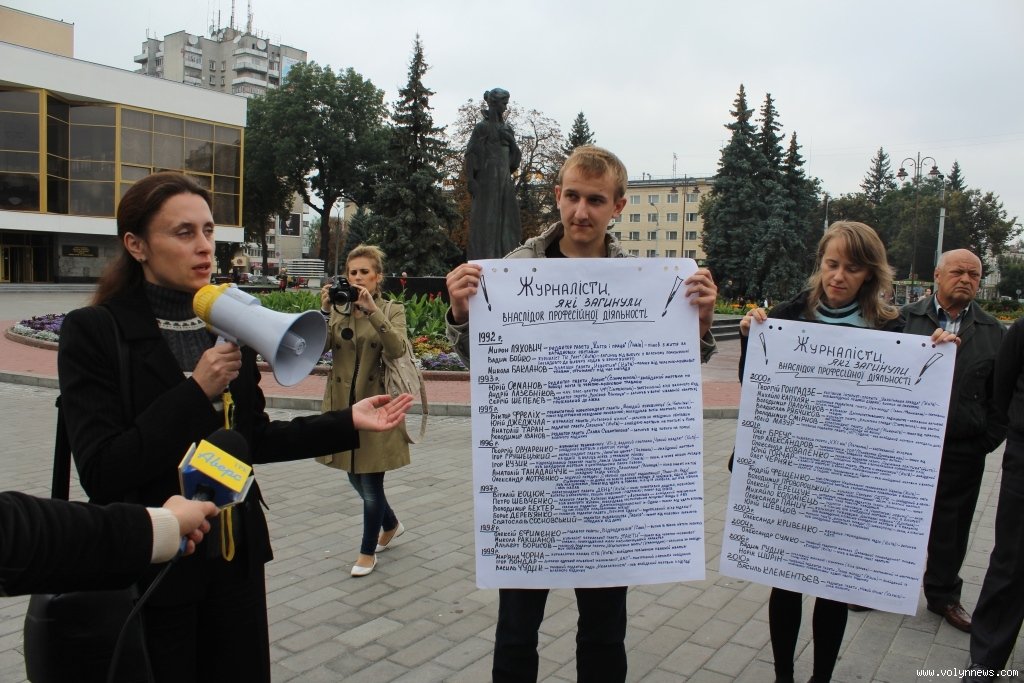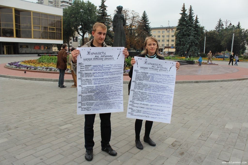 У тринадцяті роковини з дня зникнення Георгія Гонгадзе, 16 вересня, вшанувати його пам'ять та пам'ять усіх українських журналістів, загиблих під час виконання службових обов’язків, прийшли представники волинських ЗМІ. Мітинг відбувся на Театральному майдані у Луцьку.