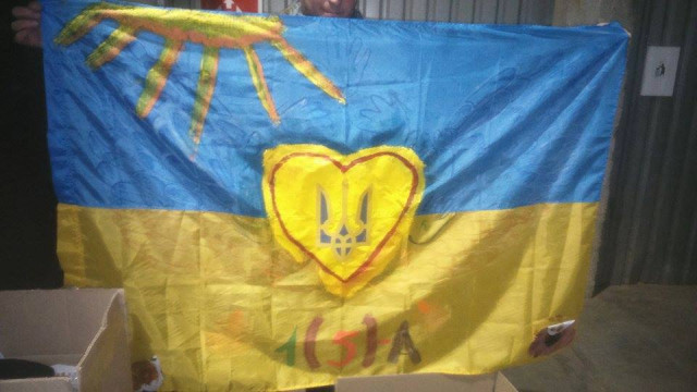 Декілька речей великого розміру взяли з «Добрих справ», дітки написали новорічне привітання, авторська листівка Марини Ткачевої, солодощі і шкарпетки передала Тетяна Должко, також листи і прапор, розписаний дітьми з Луцької гімназії № 4 імені Модеста Левицького.