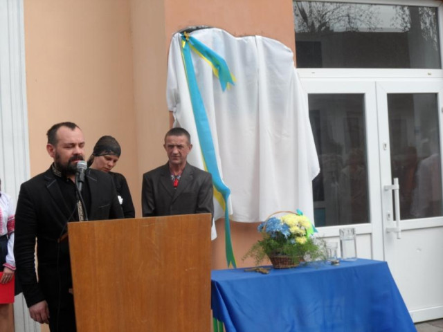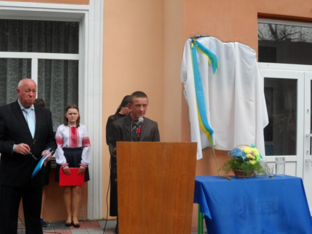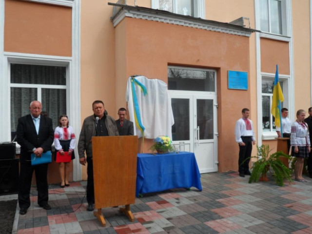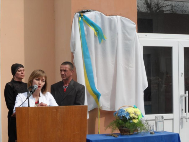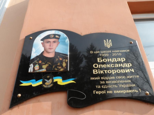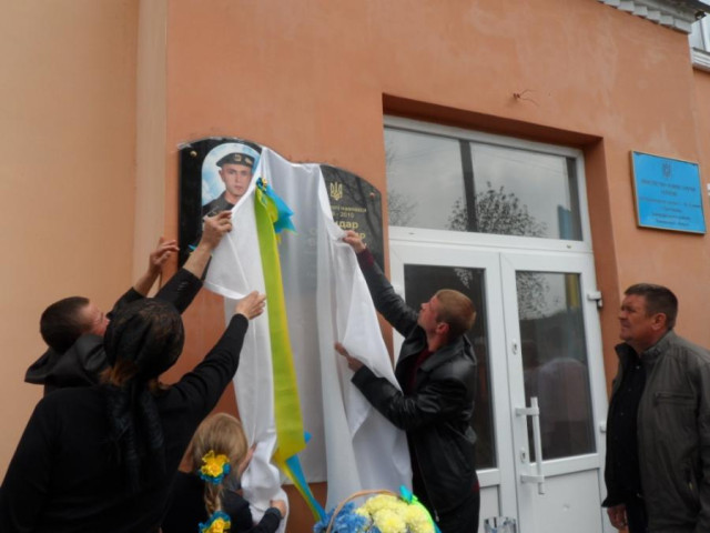Меморіальну дошку виготовив за власні кошти хрещений батько загиблого, депутат Верховної Ради України Михайло Бондар.