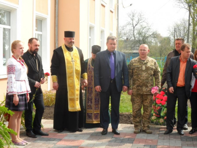 Волинському воїну відкрили меморіальну дошку за кошти хрещеного батька-нардепа