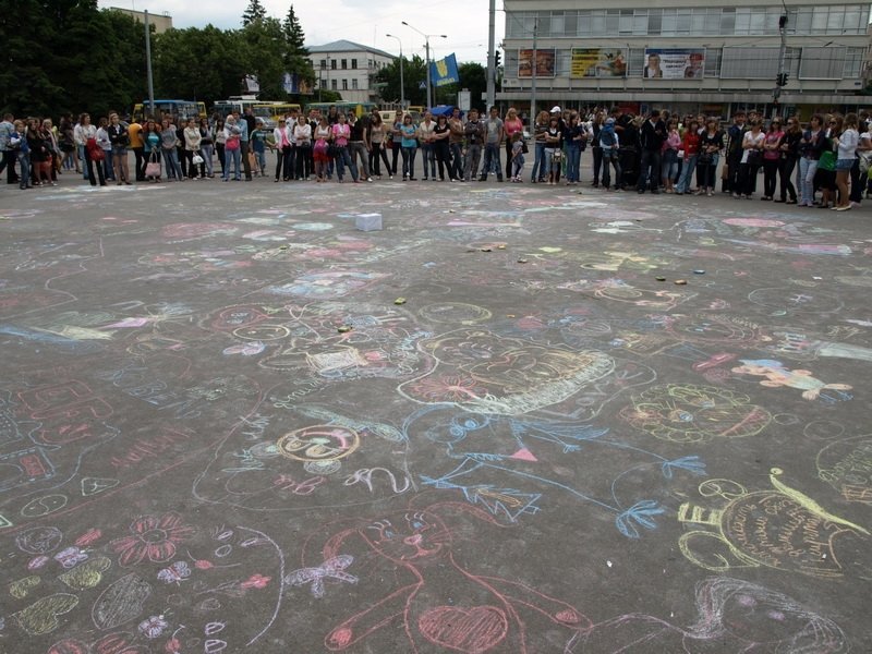 Також у рамках акції пройшов конкурс дитячого малюнка на асфальті. Усі його маленькі учасники отримали морозиво, а переможці, чиї малюнки визнали найкращими, –подарунки.