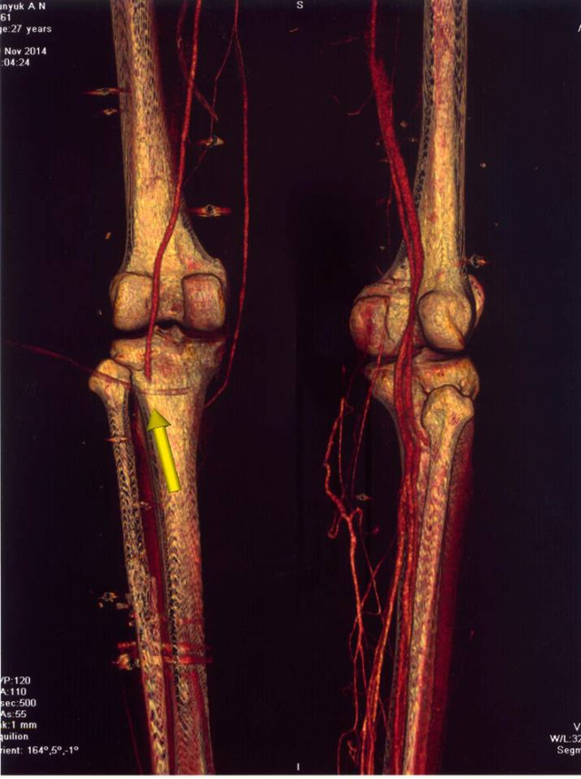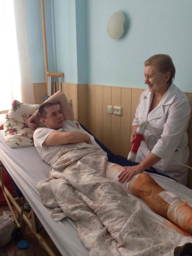 Олександр отримав важкі поранення під час бойових дій в селі Нікішино в листопаді минулого року. Осколками міни йому перебило кістки та судини лівої гомілки, після чого наступила критична ішемія ноги нижче місця поранення. Зусиллями лікарів Сашкові врятували життя та ногу від ампутації, але у важкому стані, з ускладненнями, він провів 3 місяці в лікарні.