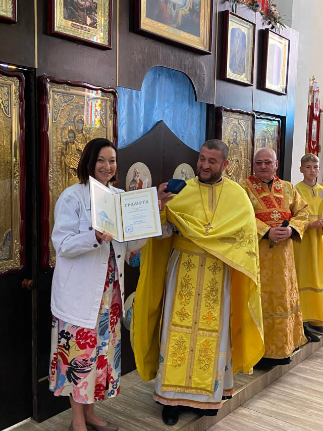 Народний депутат України від Волині Ірина Констанкевич вручила грамоту «За заслуги перед українським народом» настоятелю парафії преподобного Іова Почаївському Луцька, військовому капелану та волонтеру Олександру Вронському.