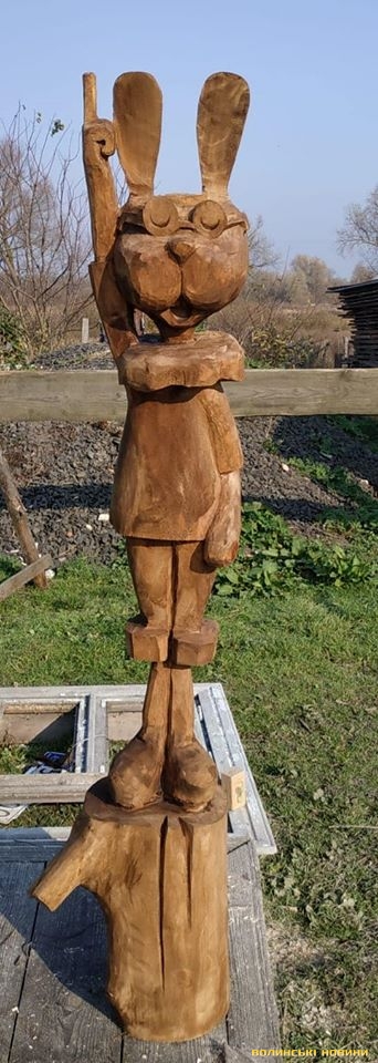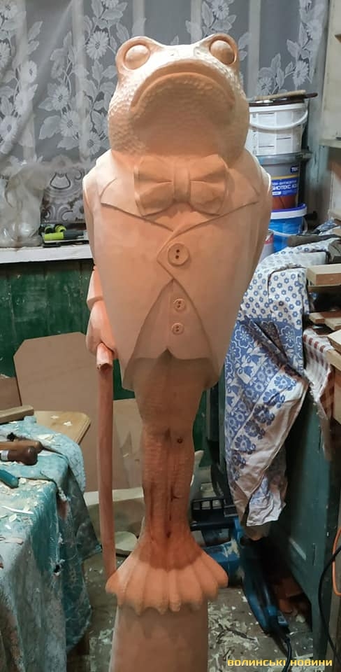 Сировиною для скульптур слугують колоди і дошки. Кілька днів тому завершив роботу над триметровою царівною-жабою. Нині майстер працює над новорічними символами – ялинками, сніговиками, дідами морозами і снігурками. Лучани зможуть помилуватися і придбати роботи талановитого різьбяра на передноворічній виставці в обласному центрі.