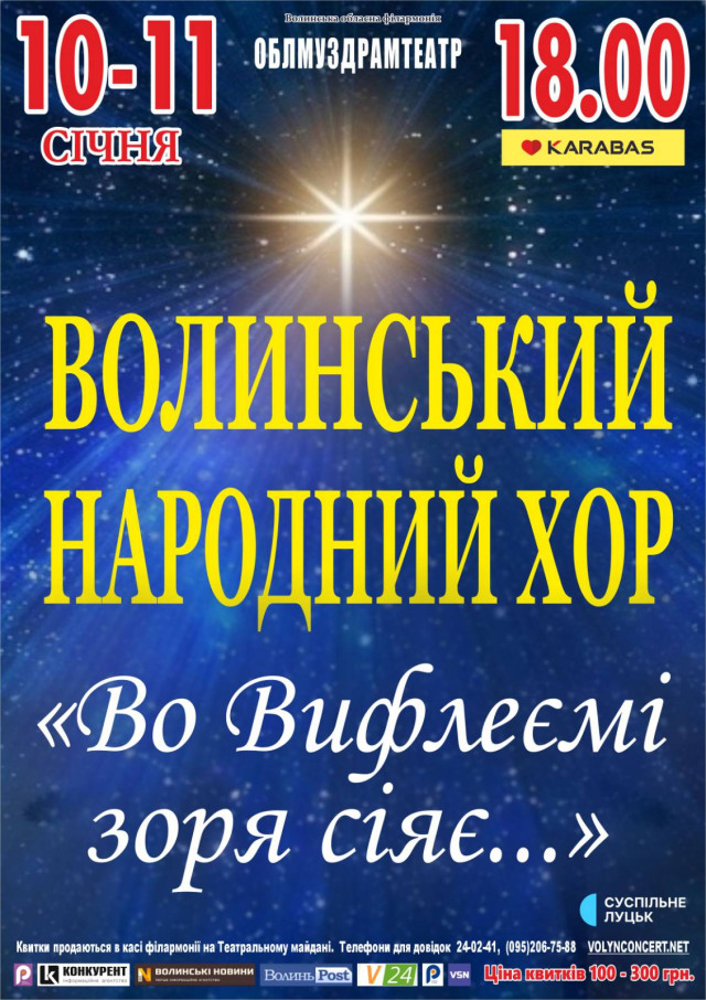 Волинський народний хор планує повторити концерт «Во Вифлеємі зоря сіяє...» 10-11 січня. Захід відбудеться о 16.00 в облмуздрамтеатрі.