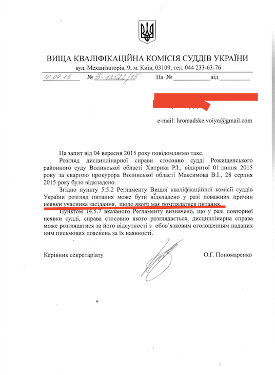 Але це рішення було прийнято з порушенням строків притягнення судді до відповідальності. Це сталося не в останню чергу й через те, що сам Хитрик не з’являвся на засідання.