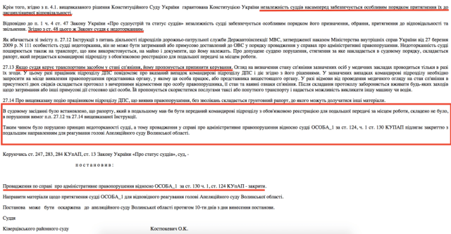 Прокуратура порушила кримінальне провадження щодо Руслана Хитрика, однак згодом справу зам’яли: спочатку перекваліфікували в адміністративне правопорушення. Проте судді вдалося уникнути навіть адміністративної відповідальності за керування автомобілем у нетверезому стані і не сплачувати штрафу. Ківерцівський районний суд в особі головуючого Олександра Костюкевича визнав незаконним складений протокол ДТП, оскільки, на думку правосуддя, він суперечив Закону України «Про судоустрій і статус суддів», яким суддя визнається недоторканим.