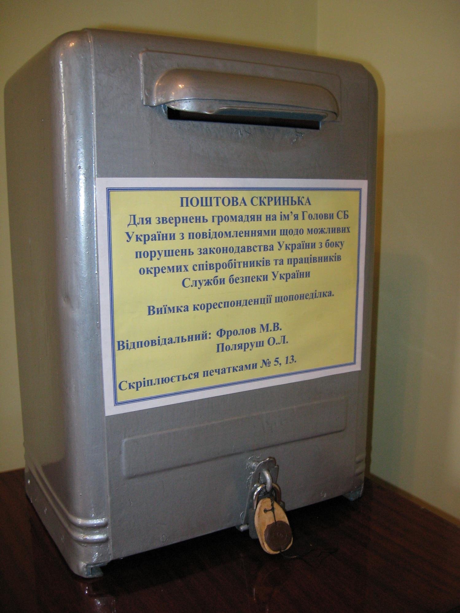 В управлінні СБУ у Волинській області у приміщені приймальні громадян встановлено спеціальну поштову скриньку для письмових звернень громадян щодо можливих протиправних дій співробітників СБУ. Усі ці звернення отримуватиме, безпосередньо голова СБУ, – повідомили «Волинським Новинам» у прес-групі УСБУ в області.