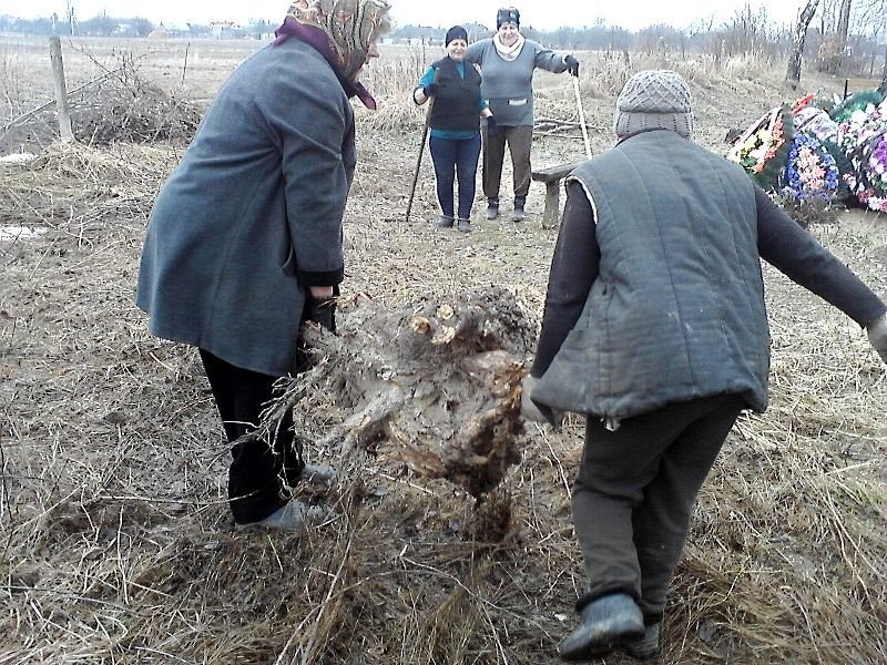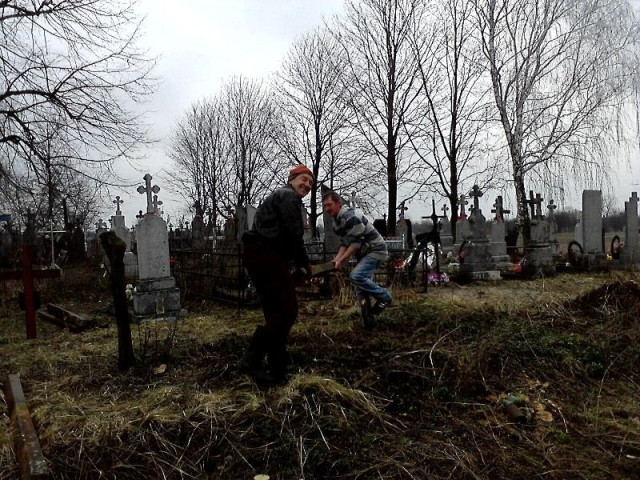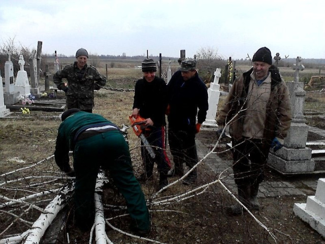 Як розповідають учасники заходу, міська рада погодила розширення території кладовища, тому напередодні великодніх свят люди вирішили прибрати місце останнього спочинку, розчистити від дерев і кущів, які заважають, полагодити огорожу.
