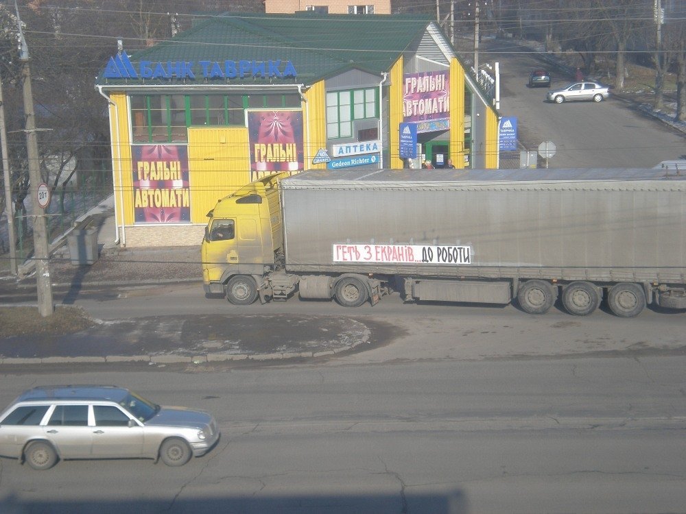 Основними гаслами сьогоднішньої акції стали звернення до влади «Геть з екрану до роботи!», «З народом так не можна!», «Не заганяйте нас в кут».