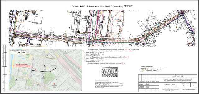 Відповідно до тендерної документації, ремонт включатиме улаштування каналізаційних колодязів, улаштування дощоприймальних колодязів, улаштування дорожніх корит, знімання асфальтобетонних покриттів доріг, улаштування основ, розливання дорожньої емульсії, улаштування вирівнювального шару, вирівнювання профілю, улаштування покриттів із бруківки, нарізування швів в асфальтобетоні, розливання в’яжучих матеріалів, улаштування одношарових асфальтобетонних покриттів доріжок і тротуарів тощо.