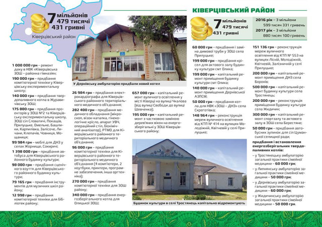 Завдяки народному депутату 23 виборчий округ отримав понад 27 мільйонів гривень із фонду соціально-економічного розвитку. Для Ківерцівського району ця сума становить майже 7 з половиною мільйонів гривень.