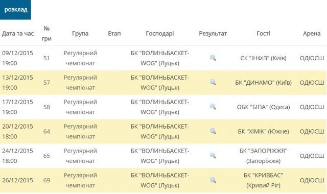 Повний розклад домашніх ігор БК «Волиньбаскет»
