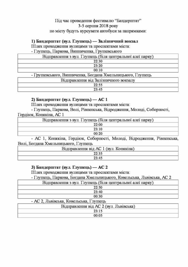 Організатори «Бандерштату» створили графік, щоб відвідувачам було зручно дістатися в різні місця Луцька.