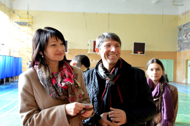 Кандидат у депутати до Луцької міської ради від УКРОПу, директор Палацу культури міста Луцька Юрій Войнаровський традиційно голосувати приходить з усією сім’єю. Навіть його внуки знають, під якими номерами у виборчому бюлетені УКРОП.Юрій каже, що від цих виборів чекає змін: «Це як після проливного дощу чекаєш сонця. Сподіваюсь, що завтра зранку люди будуть вірити у щось краще. Голосував сьогодні за своїх двох онуків. Маю надію, що Україна матиме майбутнє».Водночас Войнаровський наголошує на недосконалості виборчої системи, об’ємному масиві інформації, зазначеної у бюлетенях.